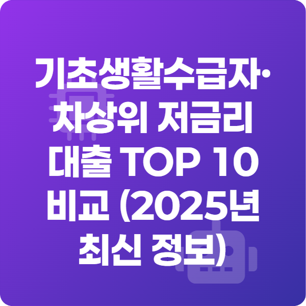 기초생활수급자·차상위 저금리 대출 TOP 10 비교 (2025년 최신 정보)