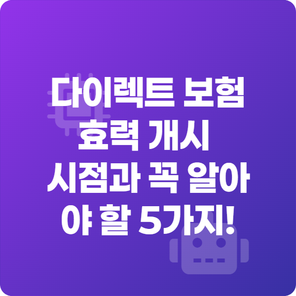 이번 글에서는 헷갈리기 쉬운 다이렉트 보험의 효력 개시 시점과 반드시 알아야 할 5가지 핵심 포인트를 정리했습니다.