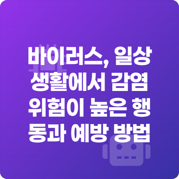 오늘부터라도 출근길, 카페, 집안에서 실천할 수 있는 작은 습관부터 바꿔보세요. “바이러스, 일상생활에서 감염 위험이 높은 행동”을 인지하고 대비하는 것이 가장 안전한 시작입니다.