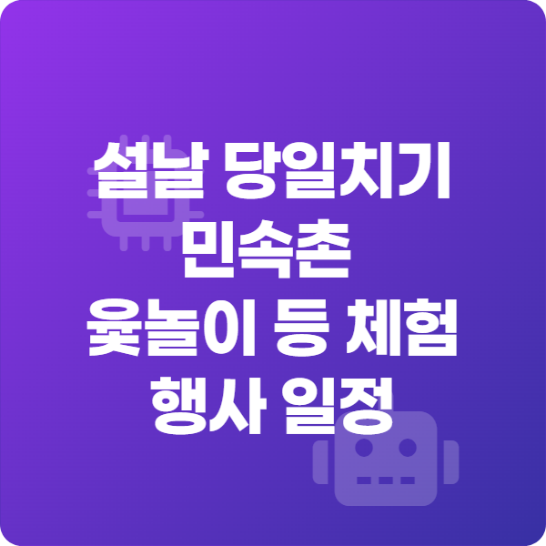 | 윷놀이 마당 | 설날 당일 | 20분 체험, 무료, 가족 참여도 높음 | 혼잡 시간대 대기 발생 |