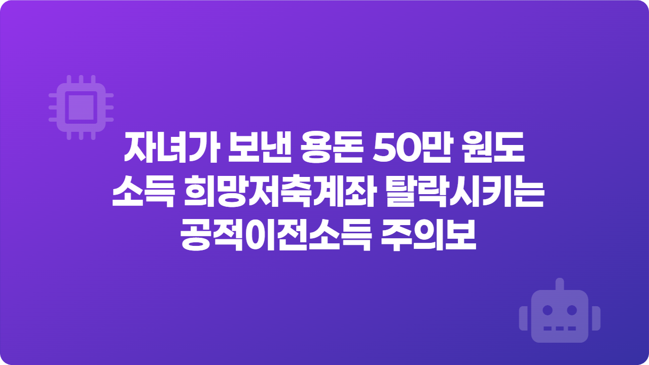 자녀가 보낸 용돈 50만 원도 소득 희망저축계좌 탈락시키는 공적이전소득 주의보