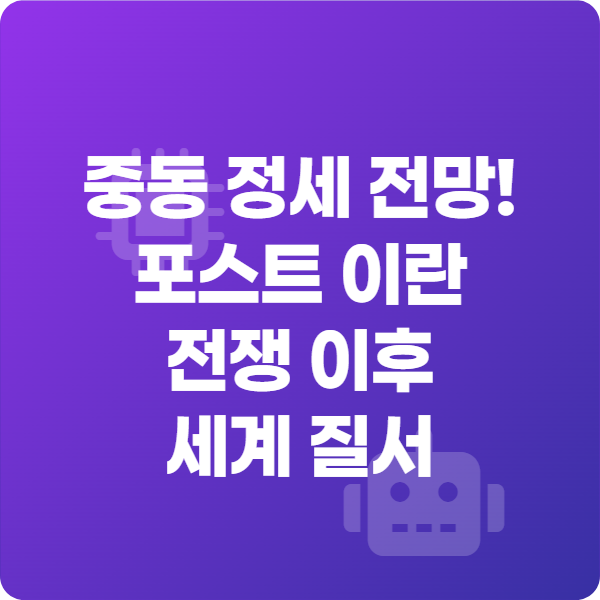 포스트 이란 전쟁은 단순한 지역 분쟁이 아니라, 중동 전체와 세계 질서에 직접적인 영향을 미치는 사건입니다.
