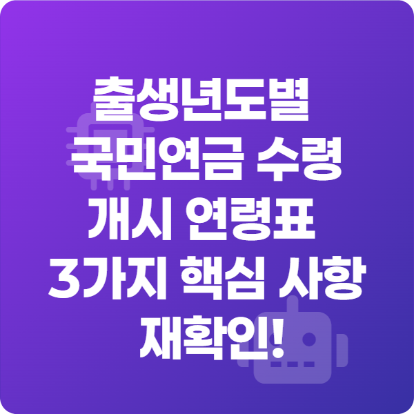 오늘은 출생년도별 국민연금 수령 연령표를 기준으로, 3가지 핵심 포인트와 실제 준비 전략을 정리했습니다.