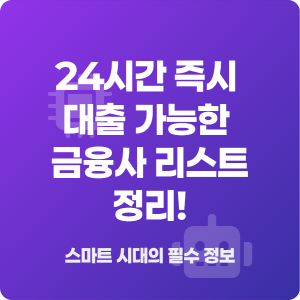 이제 실제로 24시간 즉시대출을 제공하는 금융사 리스트를 조건별로 정리해 보겠습니다.